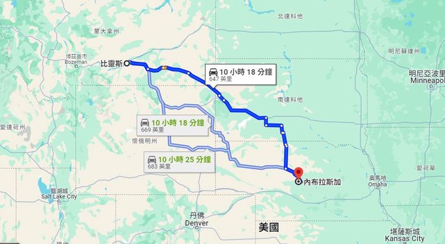 這非典型的公路電影路途有多長呢?從比靈斯到內布拉斯加,Google了一下,要647英里