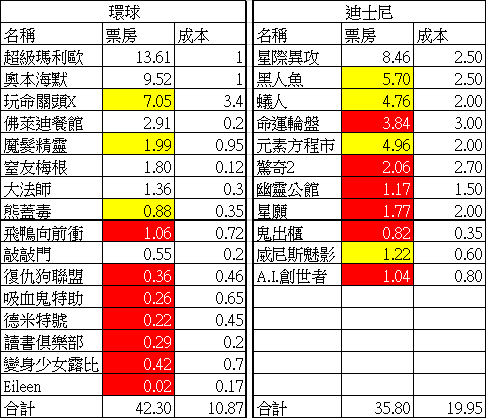 → fantasyhorse: T大的表格,一部經2就抵環球所有紅字的製作成本 01/04 12:14