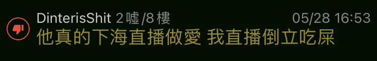 噓 DinterisShit: 他真的下海直播做愛 我直播倒立吃屎 05/28 16:53