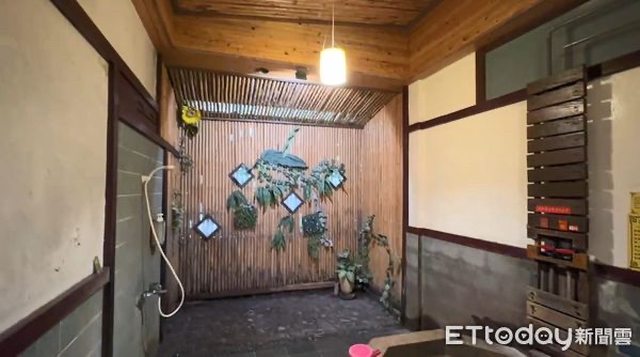 ▼L男佯裝成顧客,躲在竹圍籬後方持手機偷拍情侶泡湯,並上傳影片牟利,手段下流且