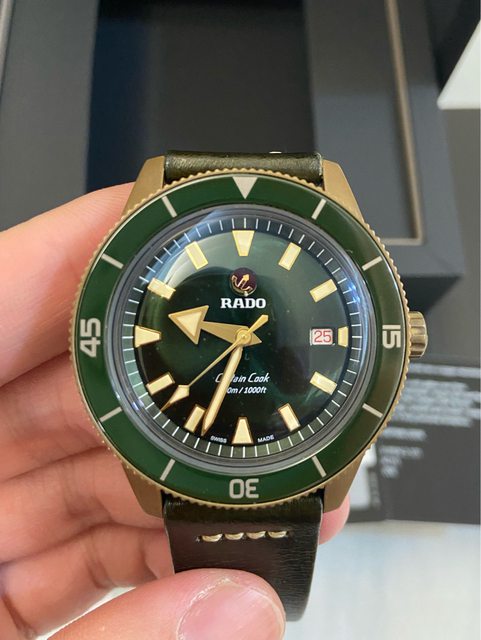 青銅氧化勻稱,深邃綠色太陽紋錶面,搭配金色指針時標十分好看,可用擦銅布修飾出你