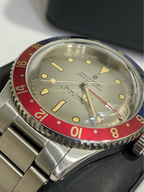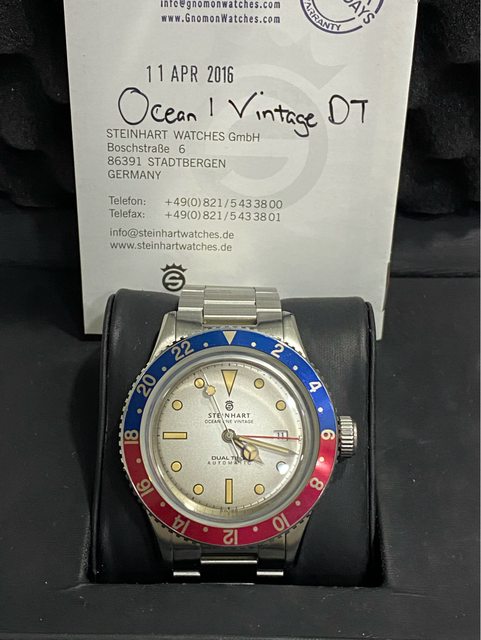 【商品名稱】steinhart vintage Dual time 【型號)103-0495 【商品價格】10800元 【新舊程度】9成左右,走時正常 (日常少戴) 錶徑42mm 箱型藍寶石鏡面 瑞士soprod a10機芯 兩地時間(GMT) 【附件】 約2016年國外購入, 原廠盒多餘錶節皆有 純出售,無交流,不議價 【交易方式】 匯款後黑貓(+150元) 或三重捷運站面交