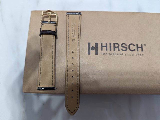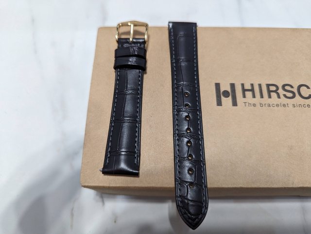 的hirsch錶帶,但由於這次買不到18mm的壓紋複合式錶帶,所以改用london系列的黑色款