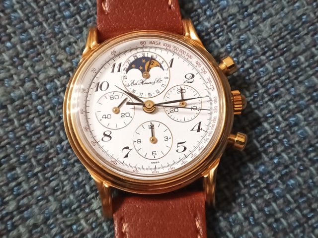 這是月相計時碼表,在20世紀90年代左右作為限量版發佈,以紀念豪雅公司成立125周年
