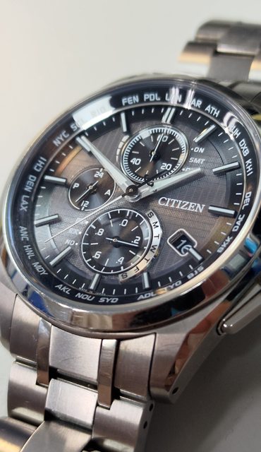 2.Citizen 光動能鈦合金三眼電波錶