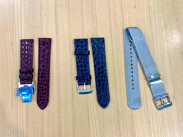 2. 22mm收20mm深藍色圓紋鱷魚皮錶帶