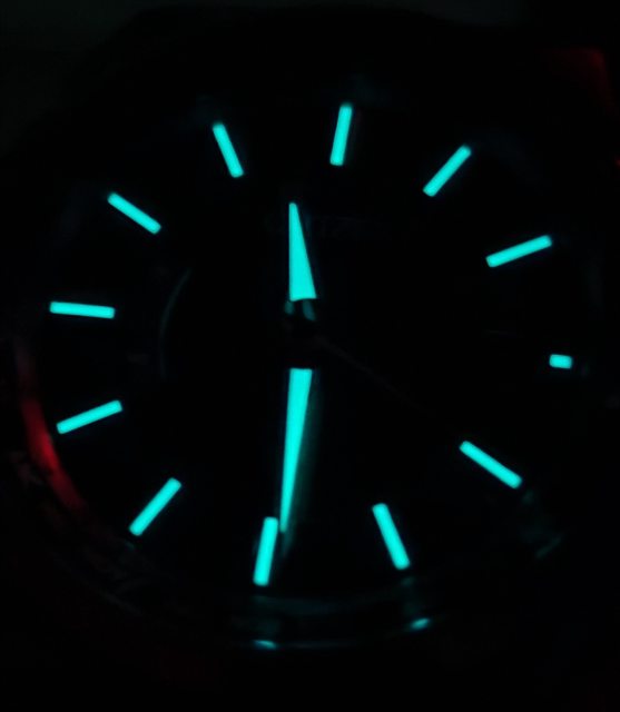 石鏡面無傷、簡單的大三針,黑盤中間格陵紋顯眼配上白針判讀非常容易,狀況都正常,