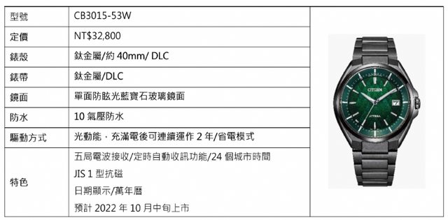 綠面、高山針葉林意境、全錶DLC塗層、鈦金屬、光動能、40mm、防水100m