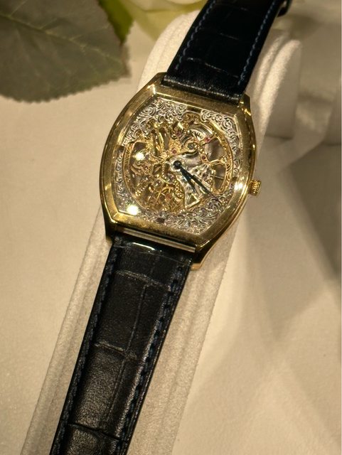 ve機芯,透背機芯有個小巧思,顯示在日本組裝城市的市花桔梗,非常漂亮,足以展現出