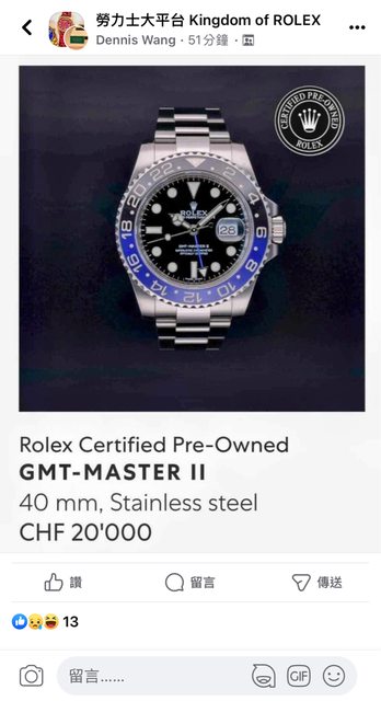 噓 Misty5448: 各位摸摸自己的老二,如果自己擁有真勞力士會送別人嗎 09/14 16:59