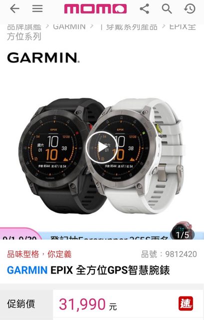 (1) 商品名稱:Garmin epix gen2 GPS智慧型戶外腕錶(黑鈦)