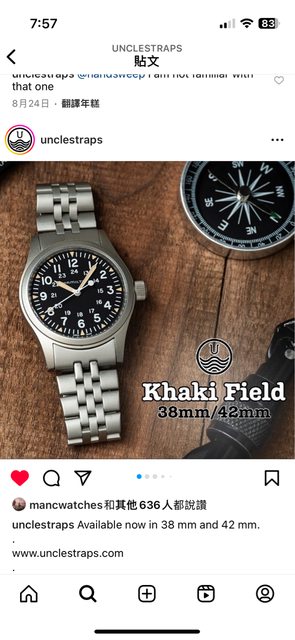 標題[賣錶] Uncle Strap 卡其野戰38mm 鏈帶