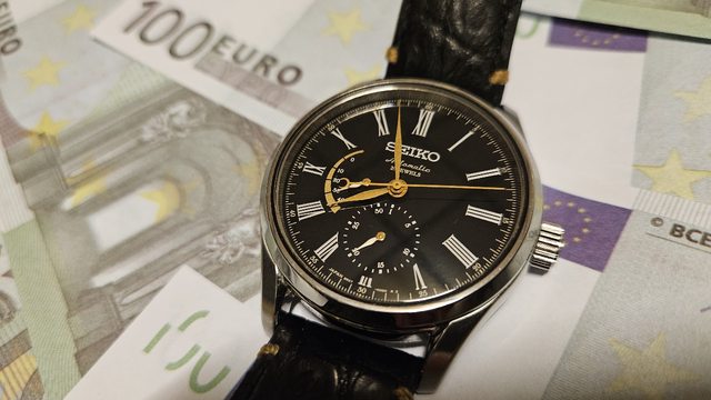 板都經過潤飾。整枚表在Seiko 的Shizuku-Ishi 製錶工坊完成。防水100米。