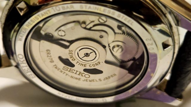 透過藍寶石玻璃錶背可以看到45小時動力存放的Cliber 6R27 機芯,這枚機芯的擺陀和底