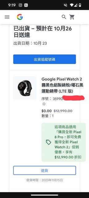1. Google官網購買手機之限時早鳥禮,全新未拆,無使用需求,故出售