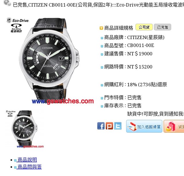 品牌名稱:CITIZEN 光動能 電波對時錶