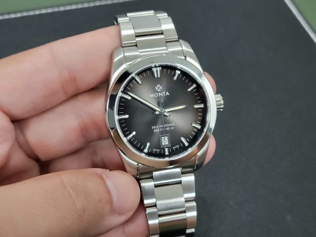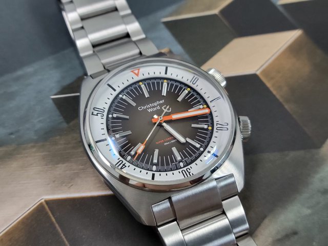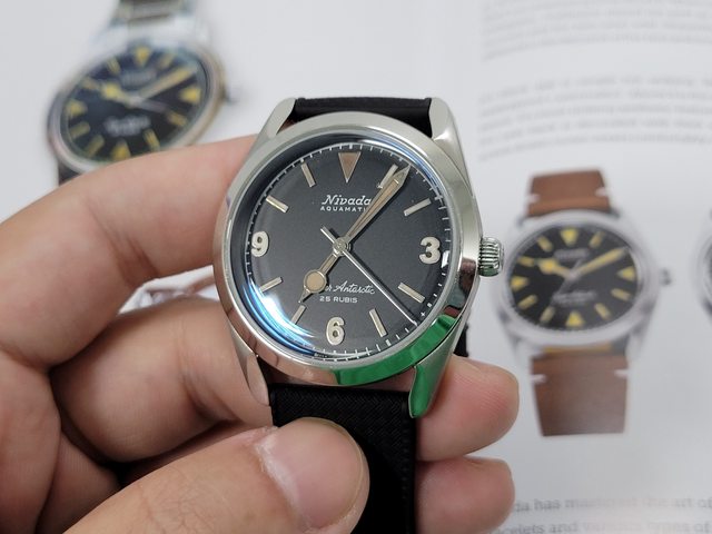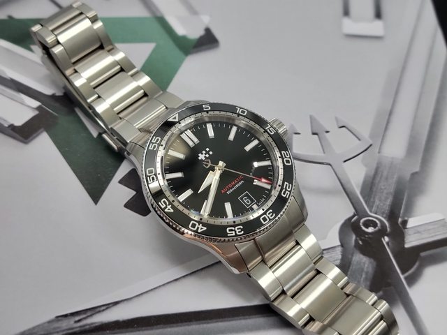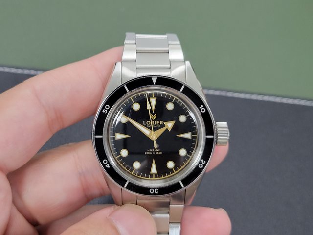 復古味十足的潛水錶,連錶鏡都是膠鏡,指針和鏈帶可以感到經費侷促之處,但整體完成
