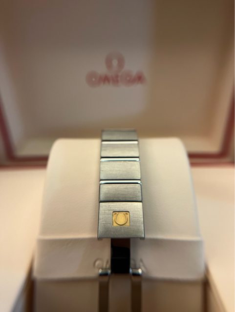 經典扣爪24mm錶徑,磨砂不銹鋼手鐲式錶鏈,飾金蝴蝶扣,歐米茄1376石英機芯,錶背印