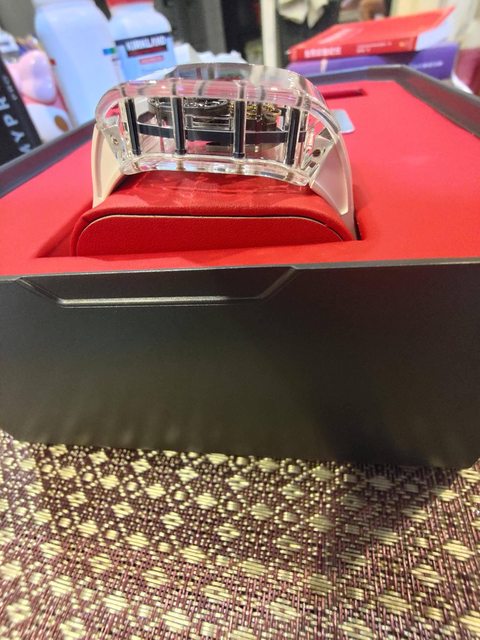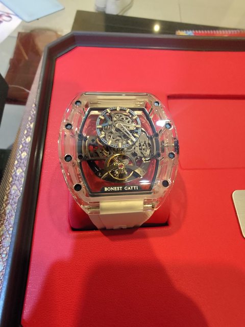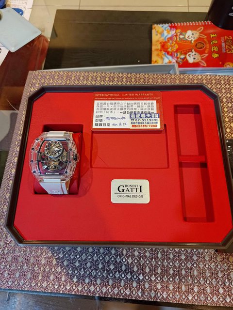 請見照片,很特殊的全透錶款。高雄港都春天購置。戴不超過10次,後來還是覺得手腕太小撐不起來,轉讓給有緣人~