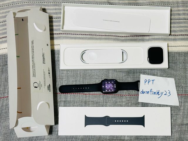 原廠盒裝、原廠全新未使用充電器、原廠全新未使用矽膠錶帶、已使用原廠矽膠錶帶、機
