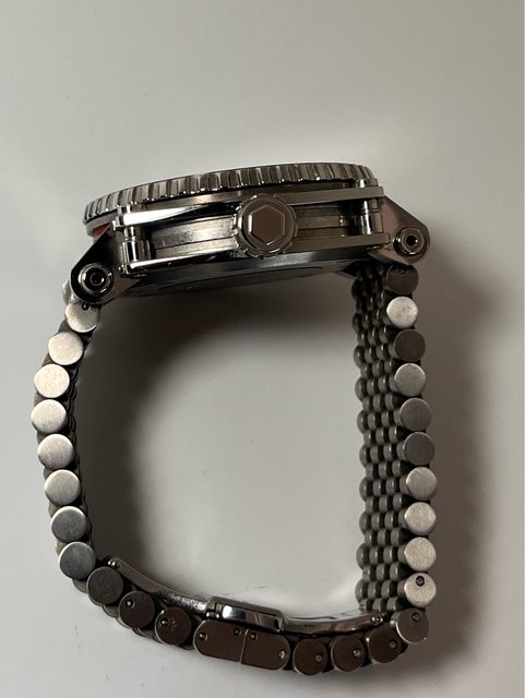 特殊的錶耳與外殼懸架相連。 錶殼每個角落的4個六角頭螺釘與獨特的實心凸耳搭配在一