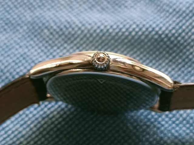 925純銀錶殼,實18K玫瑰金框, 漂亮的藍鋼指針,阿拉伯字立體時標 , 錶盤為象牙色,面盤無傷 , 做工細緻講究