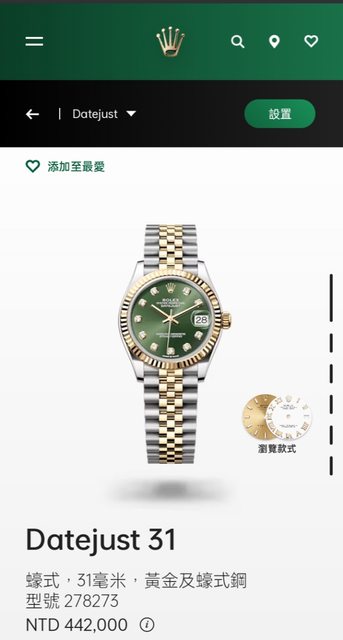 手錶型號:278273 橄欖綠帶鑽