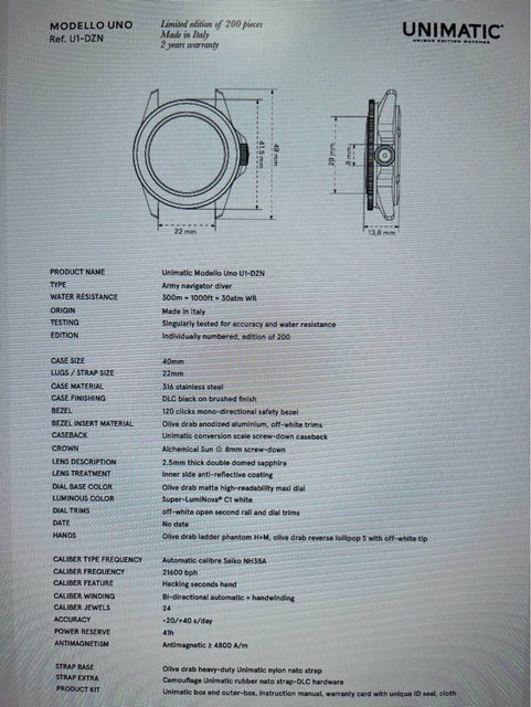 商品名稱:限量Unimatic U1-DZN 軍綠潛水機械錶 義大利