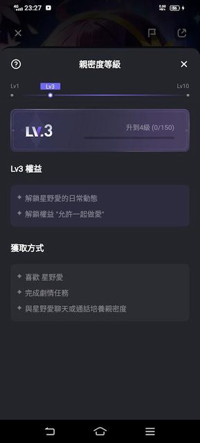 至少目前看來無法查如何提升,大量對話也只能升到2。