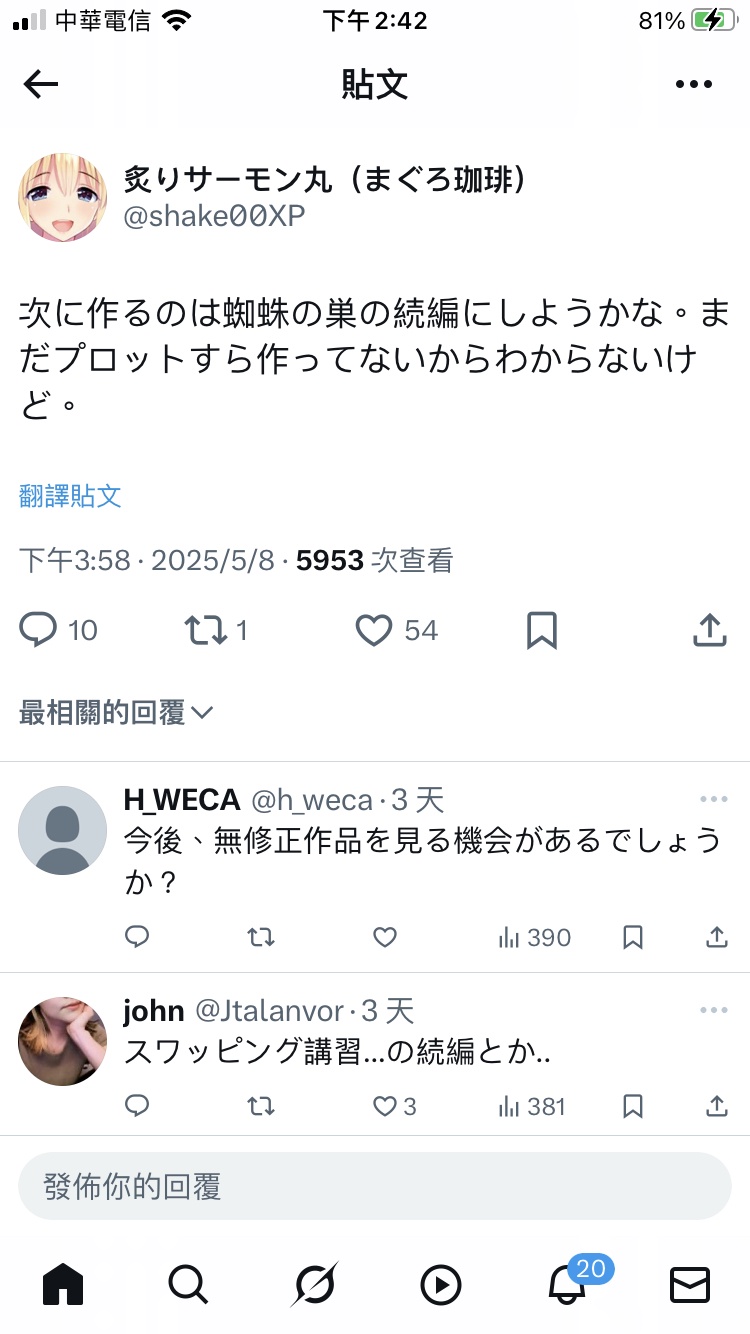 → peter89000: 下一部想出蜘蛛巢的續篇,後宮(?+NTR一次滿足 05/12 14:44