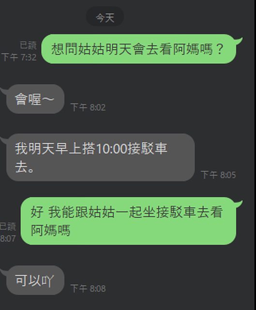 希望找位能陪同一起探望阿嬤的妳