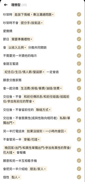 碰巧在交友軟體上看到整理過的理想型勾選