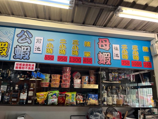 (7) 費用:公蝦池兩小時950/每兩人,母蝦池兩小時750/每兩人,熱炒費用由大家均攤