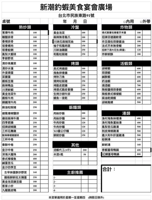 (3) 詳細住址:新潮釣蝦美食廣場104台北市中山區民族東路91號