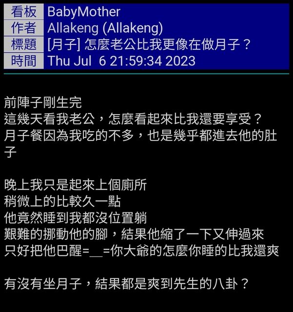 噓 kyanite : 「有沒有坐月子,都是爽到先生的八卦」你想寫系列文 08/08 23:09