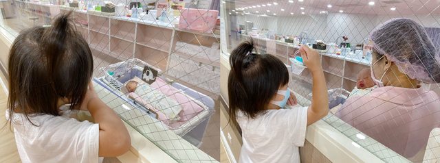 嬰兒室外面站著看不夠,回房間可以坐著繼續看唷