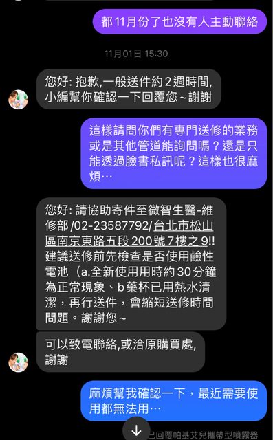→ c9103240529 : 到用不到一年壞掉需要維修的時候卻遇到這些狀況, 11/06 16:19