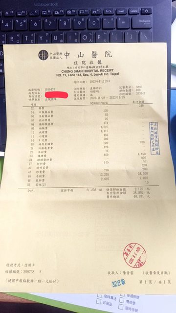 花費如下,保險可以理賠(手術險、實支實付、住院日額)