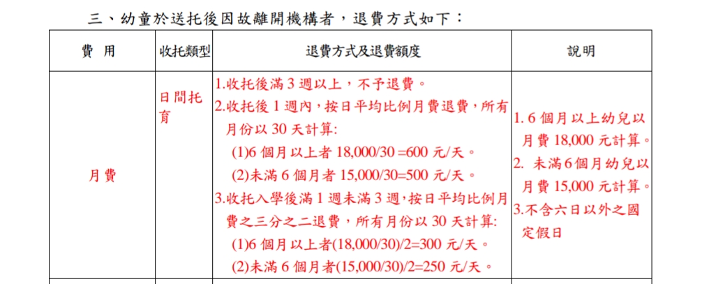 園方:計算是退托時剩下兩個月的註冊費的1/3,