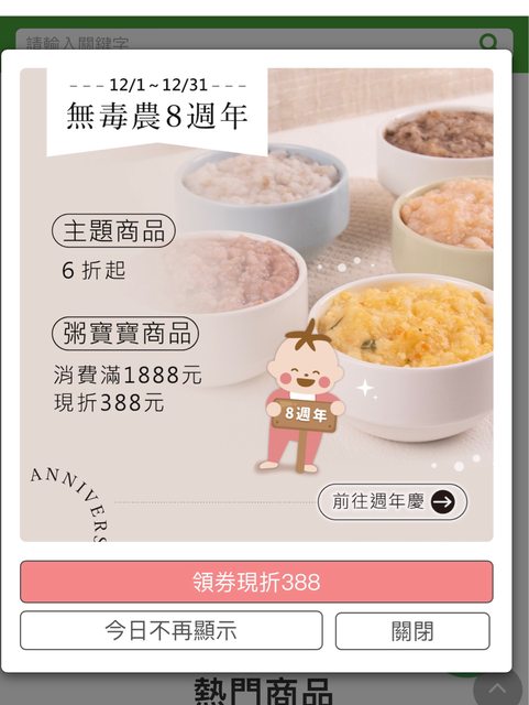 標題[好康] 無毒農粥寶寶 週年慶 滿1888-388