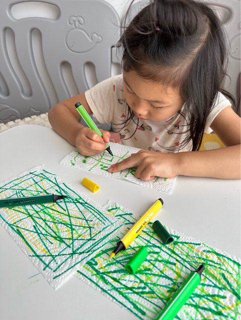 讓孩子自行拿水彩筆上色。