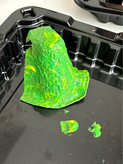 在塑膠盤上擠上黃色跟綠色,