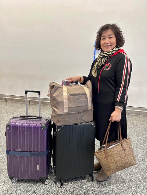 《機場的阿姨~不誇張,只有咖啡色那袋是阿姨的個人衣物》