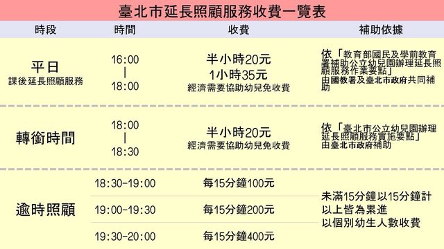 ˙課後延長照顧時段:16:00-18:00,2小時收費70元。