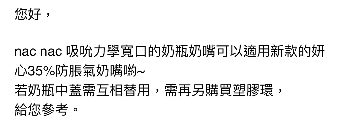 推 missheti : 妍心寬口奶嘴 可以裝在吸吮力學奶瓶上, 但其他配件 03/06 17:26