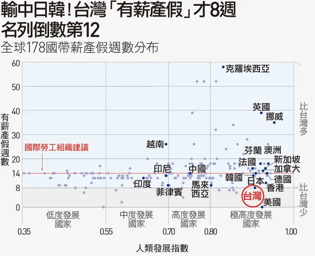 推 nanaling : 台灣產假短,但帶薪育嬰假長。 希望還可以更好, 只 03/17 00:28
