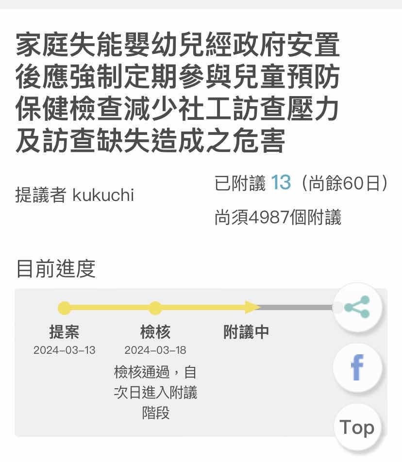 推 ma820602 : 已附議 真心希望能成功推案能早日救到一個受虐兒是 03/19 01:29