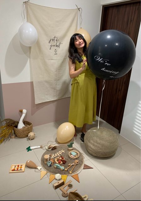 但我又加了幾個家裡現成的道具(數字氣球、抱枕)