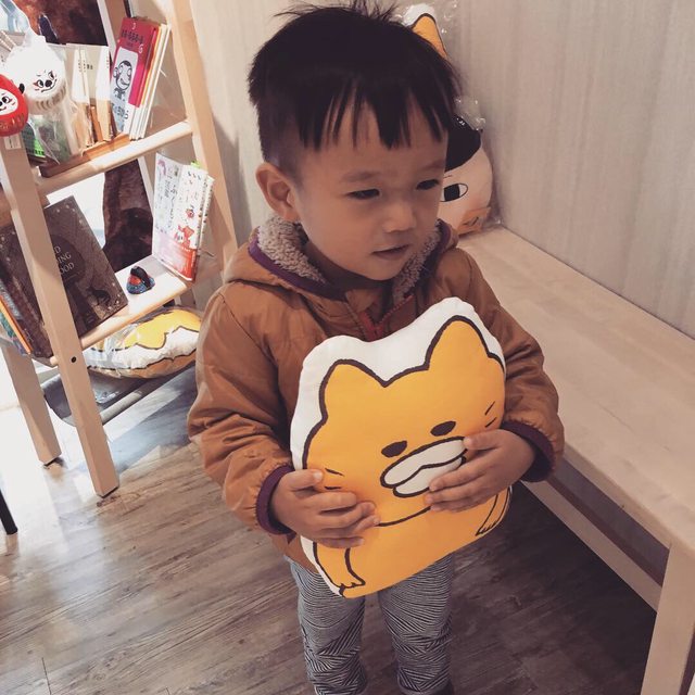 : 兒子說想要和野貓抱枕合照,這顆抱枕質感也比我想像中得好,差點放不下去啊好想帶