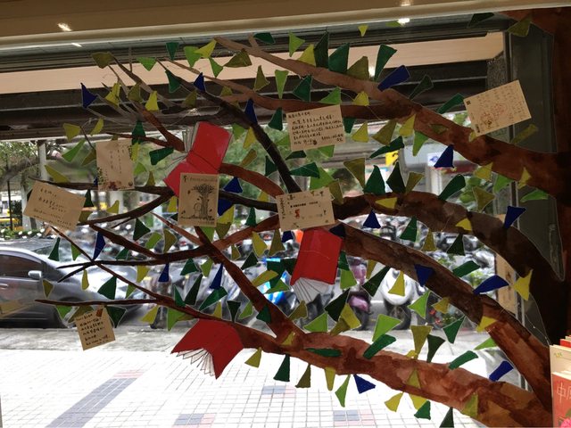 : 惠子和一些繪本作家關係也不錯,收到的明信片布置成一棵樹